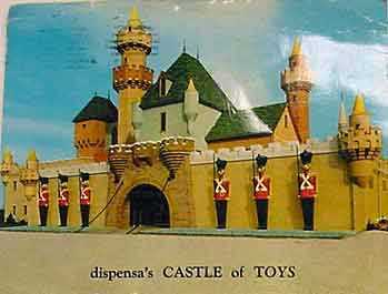 ![]() Dispensa's Kiddie Kingdom & Castle of Toys was a combination toy store and kiddie amusement park. It was located at Routes 83 and 38 (Roosevelt Road) in Oakbrook Terrace. The Dispensa family, who owned the park, operated a portable carnival business in the Chicago suburbs before settling down to open the toy store (Dispensa's Castle of Toys) in 1967. The kiddie park (Kiddie Kingdom) followed in 1975. The Castle of Toys was a toy store disguised as an 8-story Bavarian castle, complete with bright colors and storybook turrets. The Kiddie Kingdom was a small-scale amusement park designed for children under 12 years old. "Kiddie parks" were a new innovation during the baby-boom years of the 1950's, and remained popular into the 1970's. The Kiddie Kingdom had, among other things, an antique German carousel and a miniature train that circled the 5-acre grounds. |