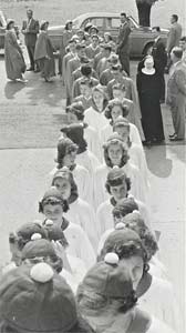 new St. Joan School! The paper is from 1957. Click here to read article. And yes, the photo on the right is the "new" school with the old church/school in the background. The "new" school still stands today. |